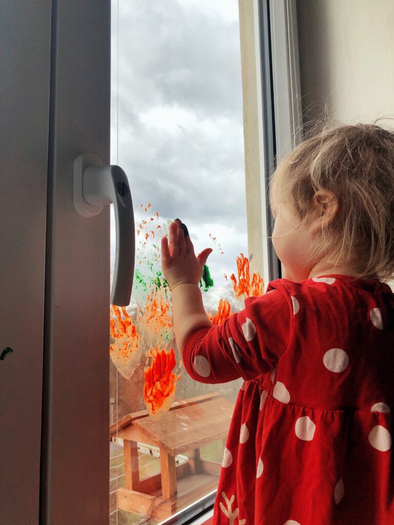 První, doma vyrobené prstové barvy u nás mají ohromný úspěch. Mě baví jejich dostupnost a fakt, že na nich nepřivedu svůj bankovní účet k zoufalství a naši holčičku prostě jen baví barvičky. Pak mě mezi oči praštila verze okenní a bylo jasný, že ty naše okna mají vymalováno.
