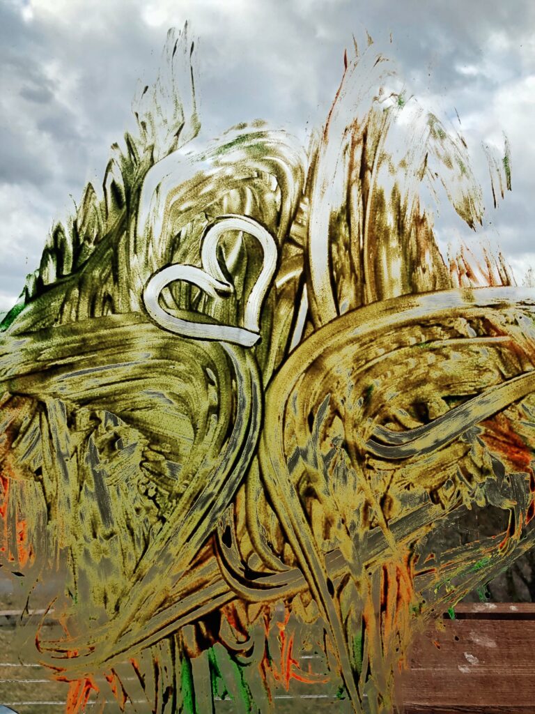 Jednou jsem v papírnictví ukořistila fixky na sklo. Byla jsem celá spokojená, jak se ta naše holčička zase zabaví, místo toho jsem se ale zabavila já. Ze skla dolů, tam problém nebyl, čestný. Sranda nastala teprve při pokusu odstranit duhu z naši holčičky a následně z okenního rámu. Ten ta duha místy zdobí ještě dnes.