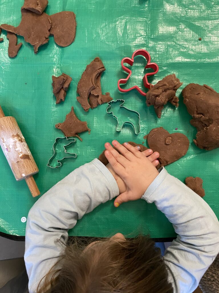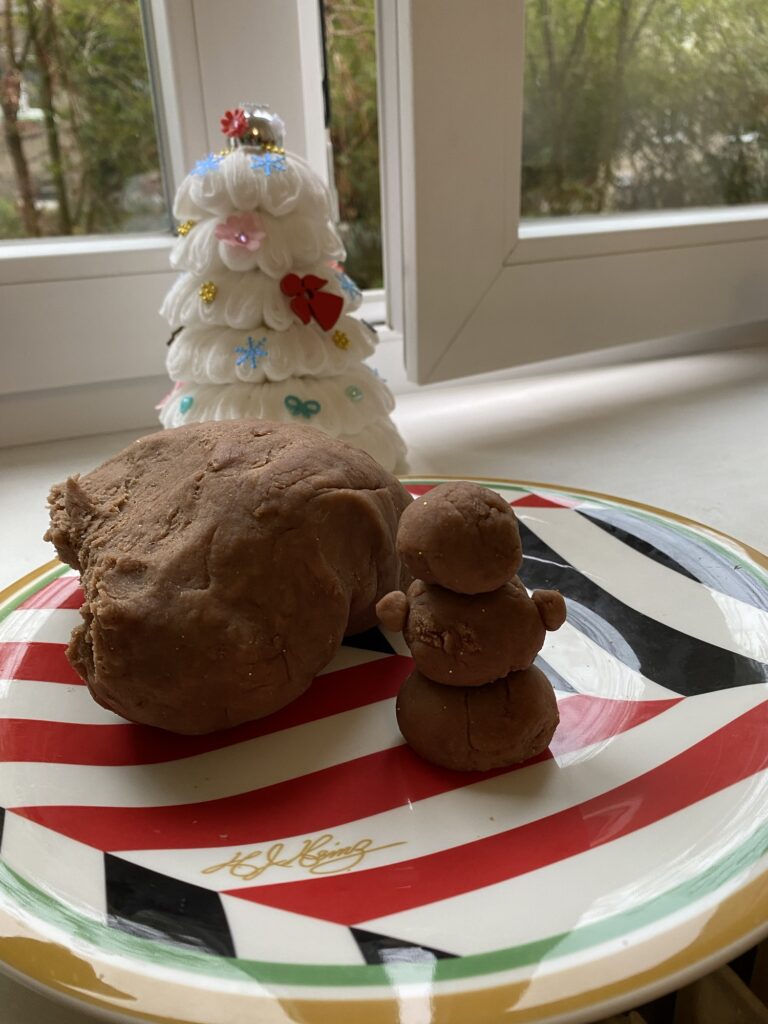 A protože já jsem stále zmítána hormony, holčička zase propadla vločkám za okny, které při kontaktu se zemí mizí jako chlap od chyceného plechu a taky tak trochu praštěná Vánocemi v regálech obchodních center, daly jsme špetku Vánoc do té naší pánvičkové plastelíny.