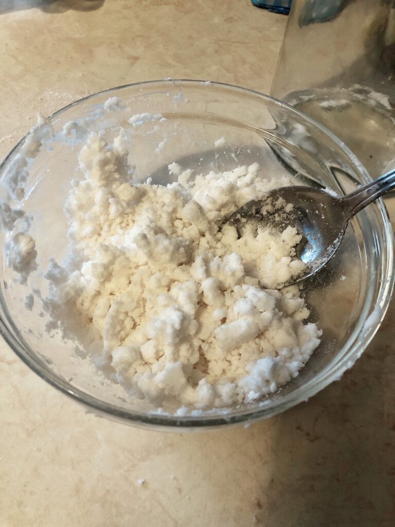 Druhá varianta byla pouze ze sody, škrobu a vody (kondicionér došel … ). A že to byla taky povedená varianta. Pro jedlíky bezpečnější.
